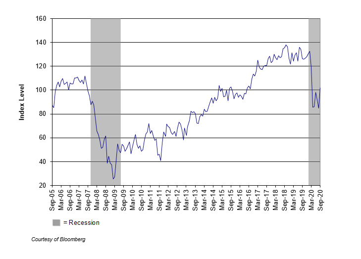 Consumer confidence is still significantly higher than it was during the depths of the Great Recession. This may be attributed to both increased government benefits as well as expectations that a viable vaccine will help the economy recover quickly.