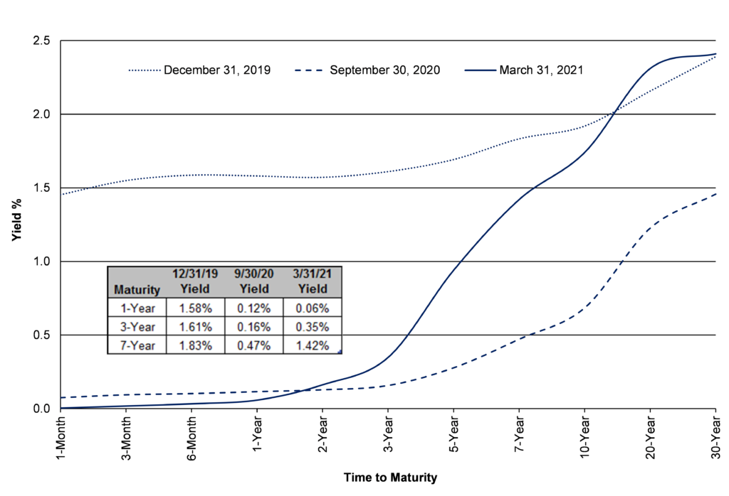 Driven by inflation expectations, the pandemic-induced collapse in yields on government bonds has partially reversed, as long-term Treasuries now yield as much as they did pre-COVID-19. Short-term Treasury rates, however, remain far lower than they were 15 months ago.