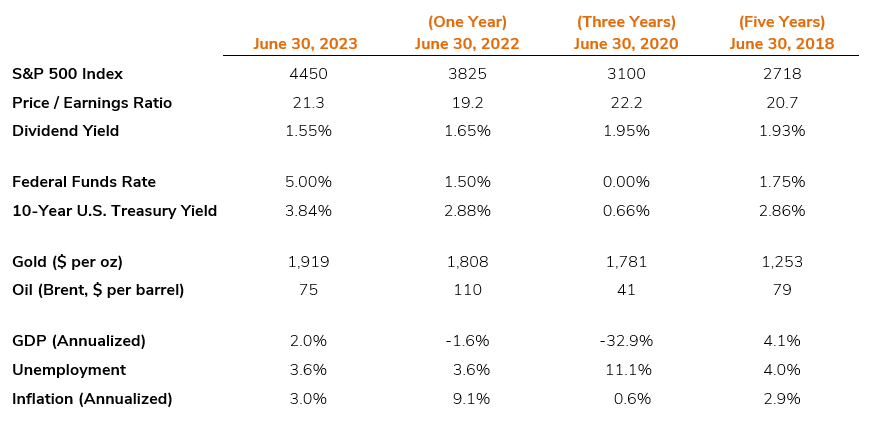 During the first half of 2023, equity markets rose across the globe as anticipated declines in consumer spending and economic growth failed to materialize. In the U.S., the stock market rally hinged on the strength of a handful of technology companies, the new promise of artificial intelligence (AI), and encouraging corporate earnings – overall, down only slightly from a year ago.