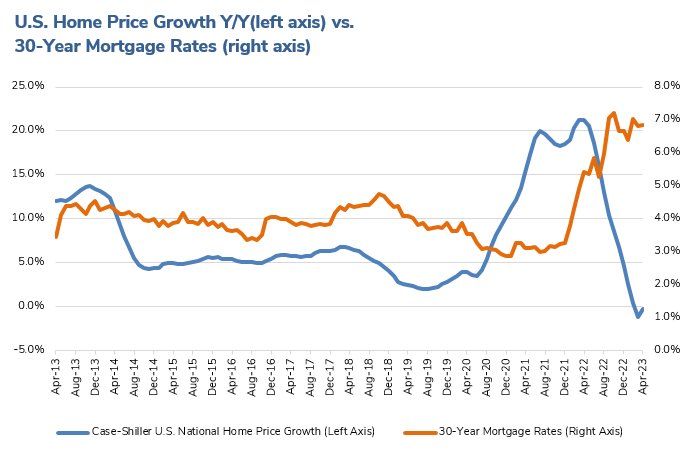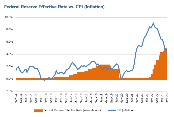 With energy prices leading the way down (average U.S. gas prices were 22% lower this Memorial Day than they were a year ago), month-over-month inflation readings continued to come in well below those from the first half of 2022. In response, Fed Funds rate increases were paused in June, as the Federal Reserve elected to wait for more clarity on inflation and the economy in general.